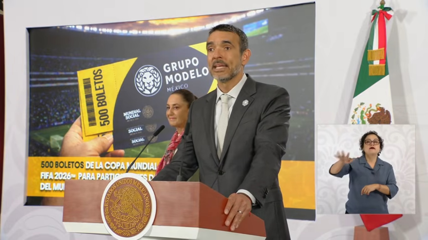 Ciudad De México, 10 de abril de 2026.- Grupo Modelo otorgará 500 boletos de la Copa Mundial 2026 para participantes de torneos del mundial social, anunció Daniel Concenzo, presidente de la cervecera. La presidenta Claudia Sheinbaum resaltó que los boletos serán para los ganadores del Mundial Social que se realizará en México, siempre y cuando sean mayores de edad.