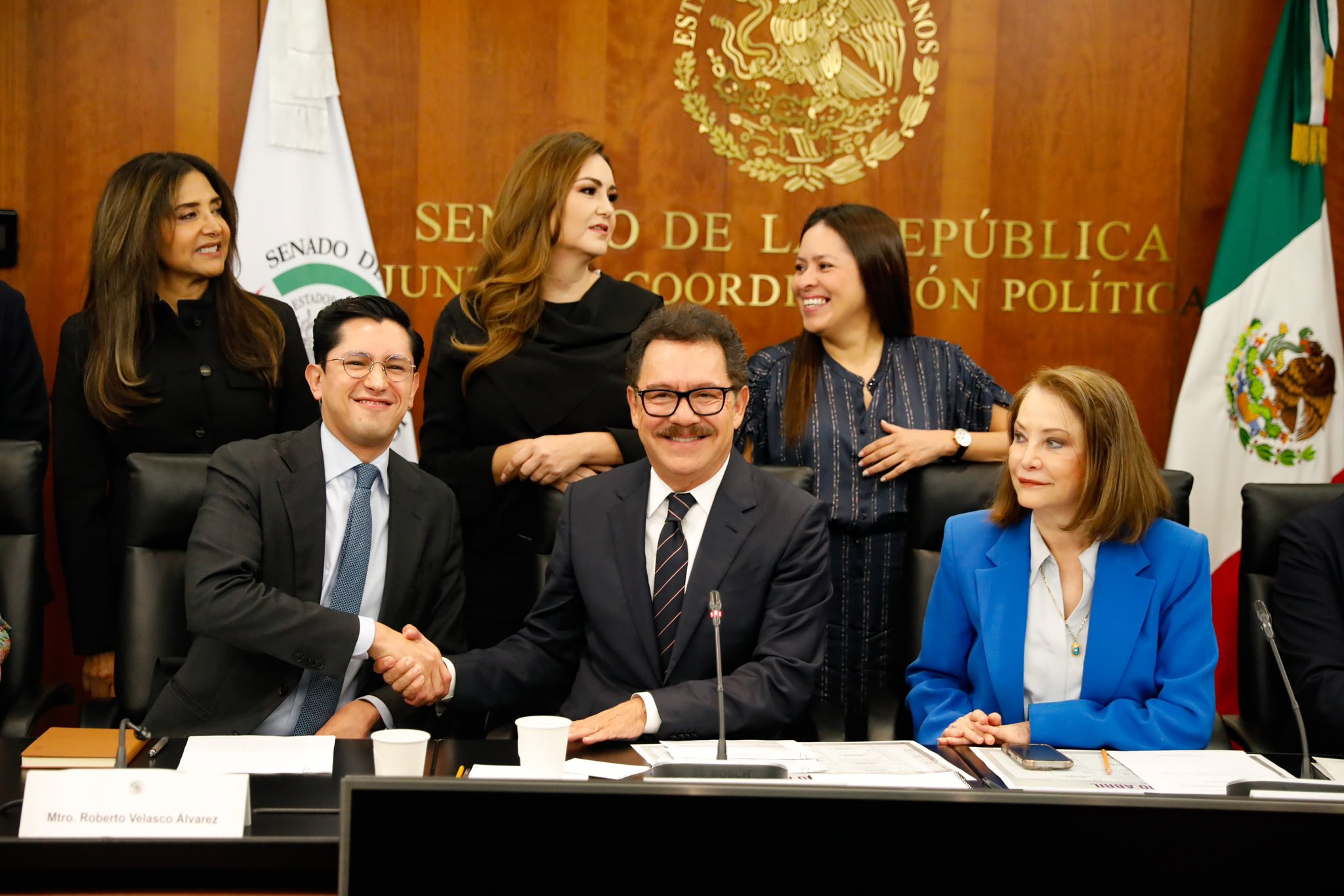 Previamente, Roberto Velasco Álvarez fue recibido en una reunión privada con la Junta de Coordinación Política (Jucopo) del Senado. Ignacio Mier señaló: “Este martes, en la Junta de Coordinación Política del Senado nos acompañó Velasco”. Durante el encuentro, se trataron temas de la agenda nacional como migración, el T-MEC, la relación con Estados Unidos y la geopolítica en América Latina.