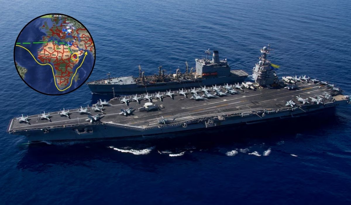 El avistamiento apunta a que el portaviones rodeará África para dirigirse a Oriente Medio, donde se uniría a los otros dos portaviones que Washington ya tiene desplegados en el marco de la guerra contra Irán. Todo apunta que por su rumbo se dispone a rodear el cabo de Buena Esperanza para alcanzar el Índico y navegar hasta Oriente Medio.